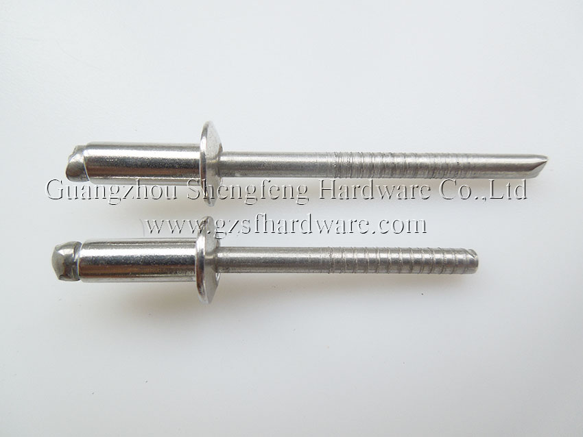 材質Material: 不鏽鋼(stainless steel)/不鏽鋼(Stainless steel)鋼(stainless steel)/鋼(steel)鋁合金(aluminium alloy)/鋼(Steel)單位/UINT:mm直徑d長度L頭部直徑dk鑽孔直徑鉚接範圍Grip RangeK(K2)L1+0.99minmaxmaxmin2.4±0.07(3/32)54.8&